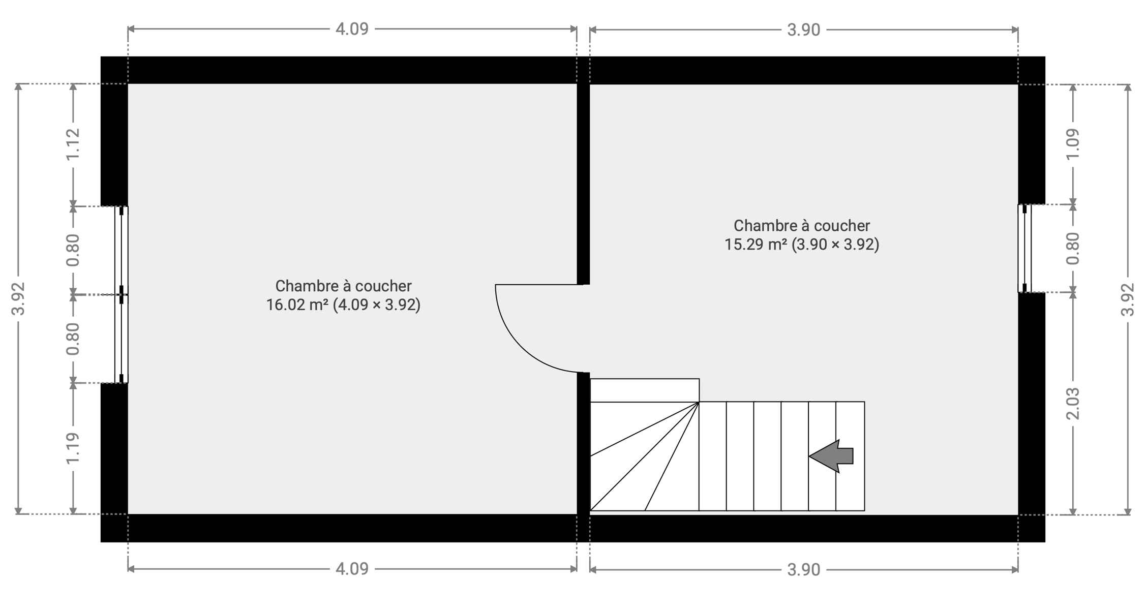 | Chambre 2 (surface) | 15 m² |