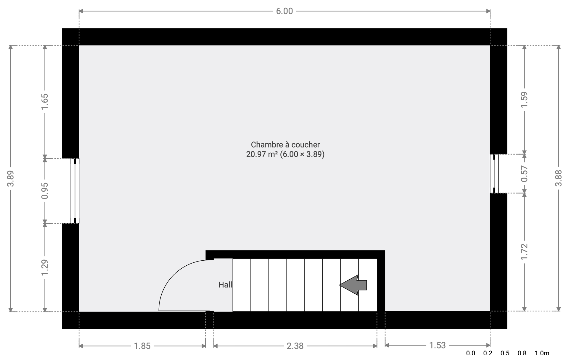 Au deuxième étage : une grande chambre de 20,97 m².