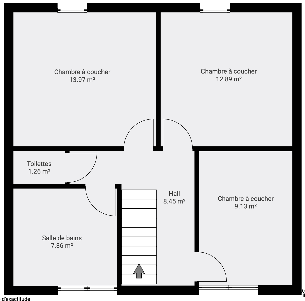 À l’étage : trois chambres spacieuses et une salle de bain lumineuse avec baignoire et douche à l’italienne. Le dernier étage accueille une quatrième chambre déjà aménagée.